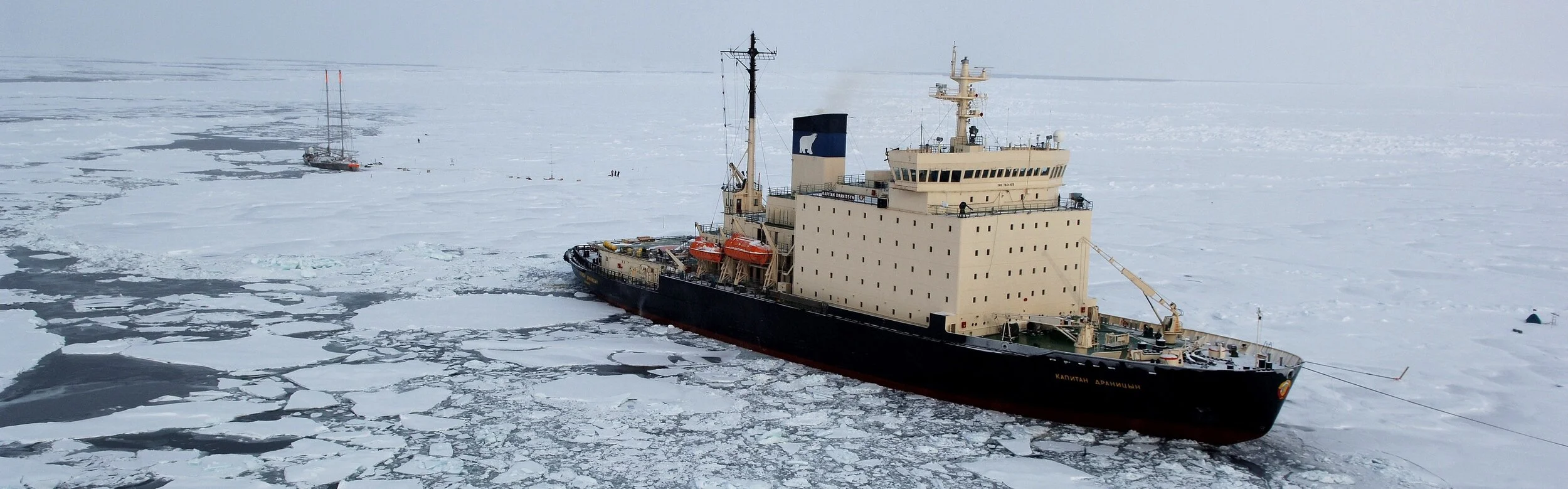 An ice-breaker ship cutting its path through the Arctic Sea — Image courtesy of Unsplash