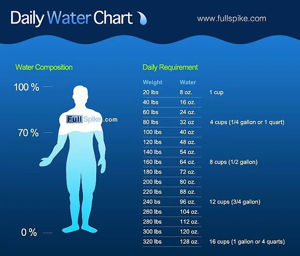 The average American consumes 3-4 cups of water on any given day. No matter what amount of activity we are doing on a daily basis, we should be consuming anywhere between a half-to-full gallon of water a day. Someone thats active will require a higher amount of intake as oppose to someone less active. I live in Southern California where its summer nine months out of the year. Even on a casual day, we dont into consideration how much we sweat or urinate throughout the day. If you are more on the active side, I suggest drinking a gallon of water a day (reference the chart below).