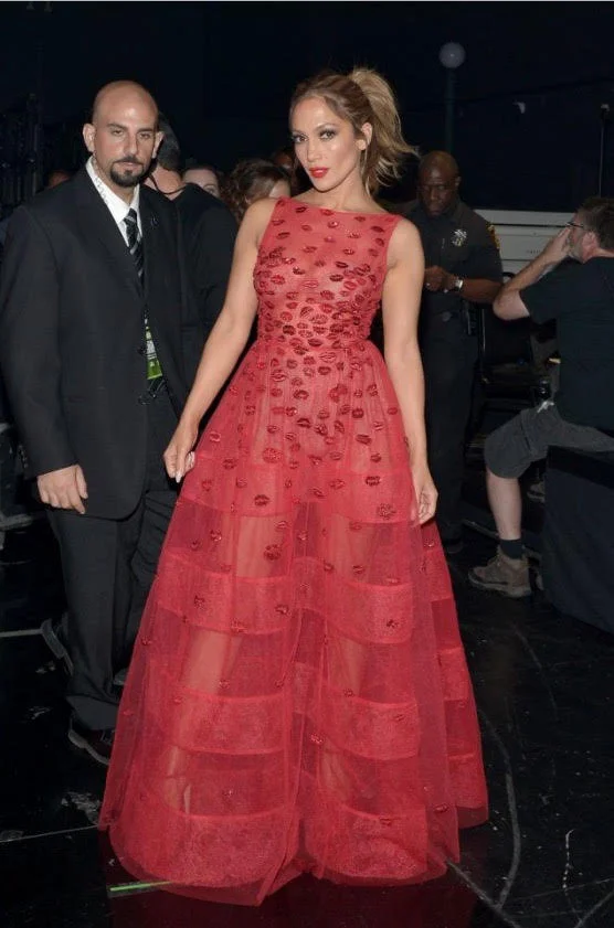 Look 5: Gorgeous, Stunning! Who's the designer behind this dress, because I don't know. This look is everything. Yes those are lip print designs. Details Details Details. J Lo stop it!