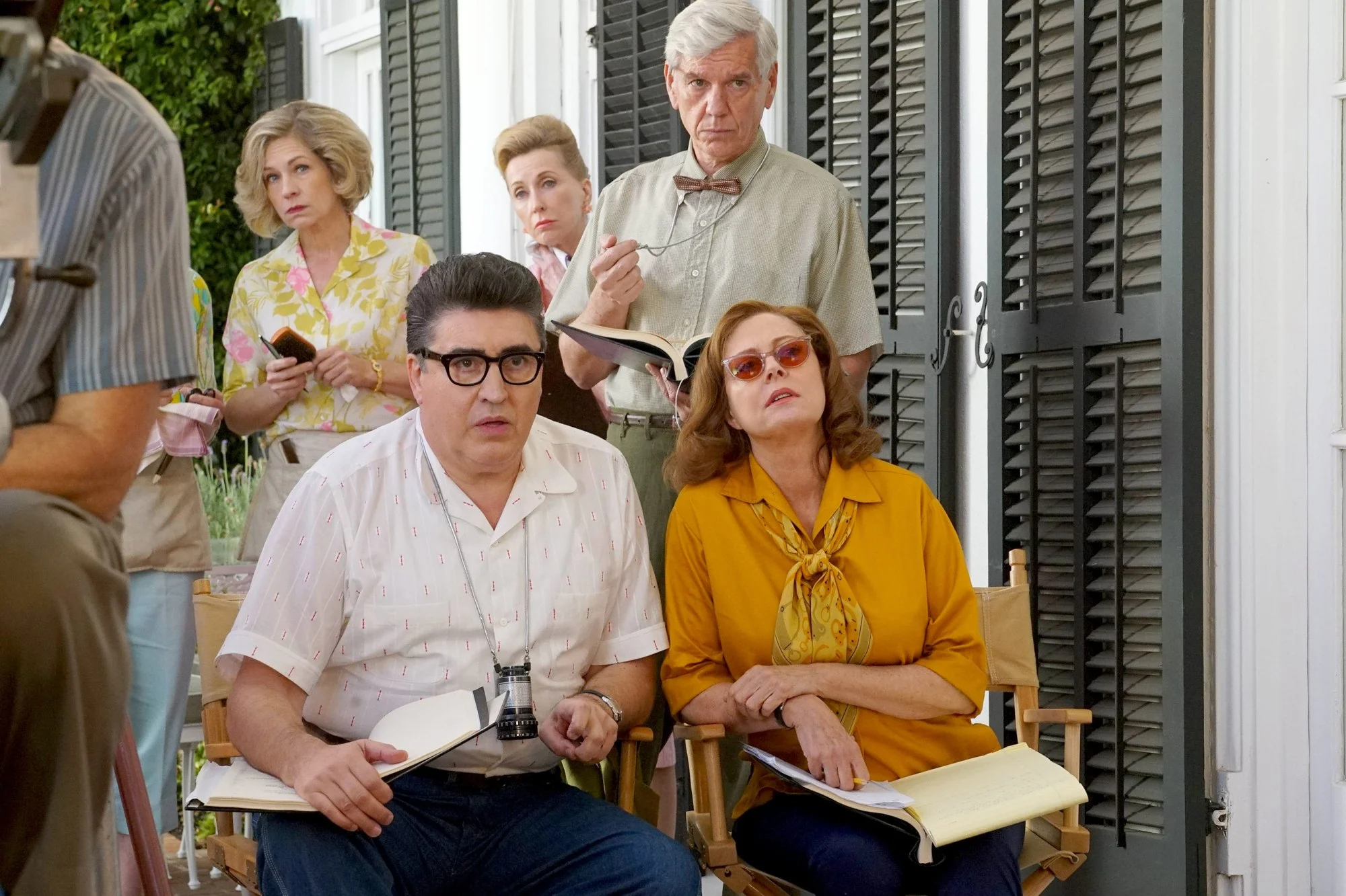 Accompanying Academy Award winners Lange and Sarandon is Alison Wright as Aldrich’s assistant Pauline, Jackie Hoffman as Crawford’s housekeeper Mamacita, Alfred Molina as the film’s director Robert Aldrich, Stanley Tucci as studio titan Jack Warner, Judy Davis as gossip columnist Hedda Hopper.