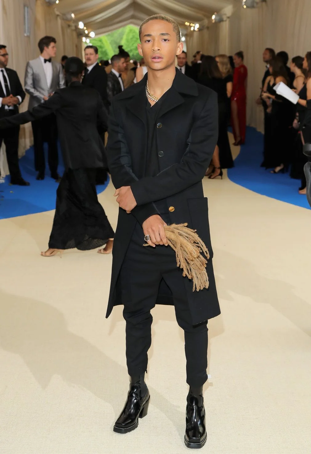 Jaden Smith kept fans and spectators alike asking “why?” with his characteristic meta exploration into the concept of the “self” by holding his own severed dreadlocks as an accent piece.