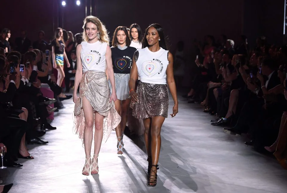 Veteran models from Heidi Klum to Kate Moss strutted the runway in clothing designed by fashion houses. Some of the items had even donated by designers.